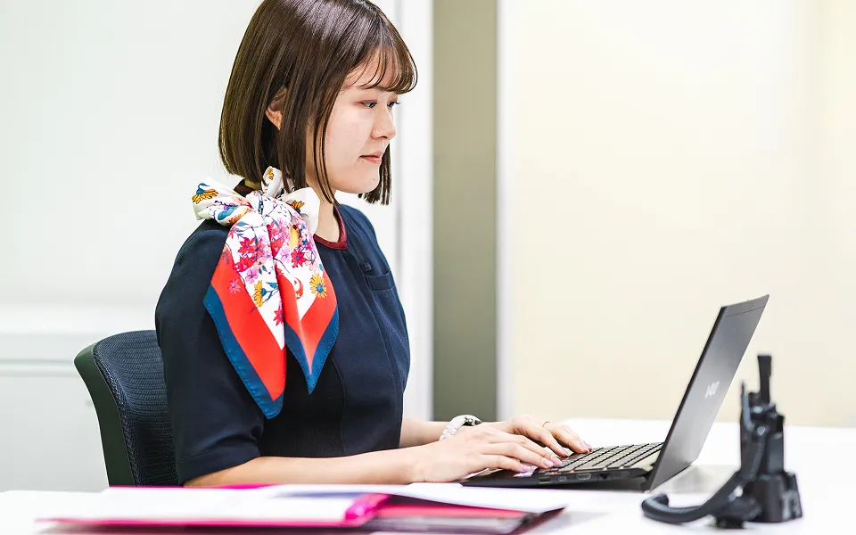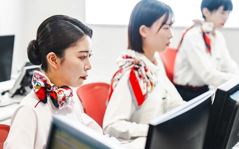私たちは、お客さまが空港に到着されてから、飛行機に搭乗されるまでのお手伝いをしています。飛行機の便の予約~航空券の購入~搭乗手続き~搭乗口~飛行機へのご案内などが主な業務です。飛行機をご利用になるお客さまはさまざまです。お仕事で搭乗される方、記念日のご旅行として搭乗される方、小さなお子様一人でのご出発など、短い時間でお客さまが必要とされることを判断しなければならない場面が数多くありますが、お客さまの「ありがとう」が私たちの最高の喜びです。