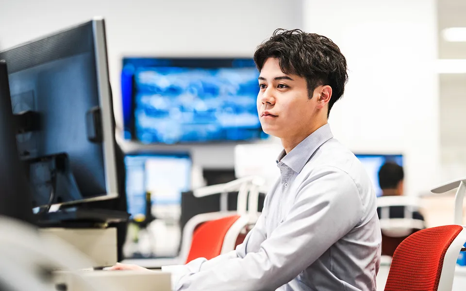 JALグループ便をご利用になるお客さまの情報、発着便の運航状況などに常に気を配りながら、いろいろな場所で業務を行っているスタッフに必要な情報を提供します。